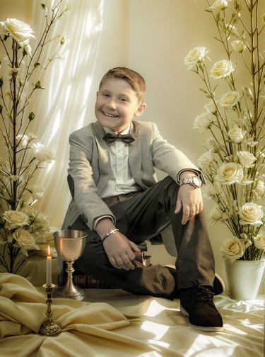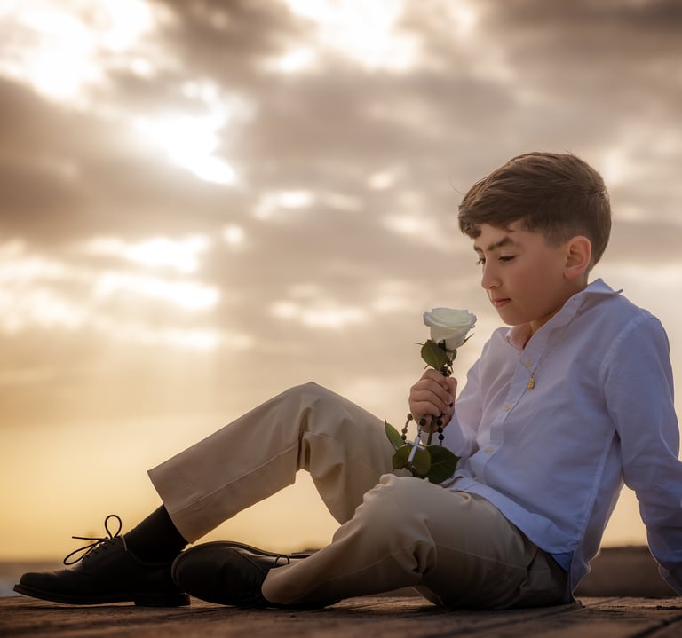 Inmortalizamos este momento tan especial en la vida de tu pequeño con fotografías artísticas que capturan la pureza y alegría de su Primera Comunión. Cada sesión está diseñada completamente a tu gusto, creando imágenes elegantes y atemporales que se convertirán en un tesoro familiar.
